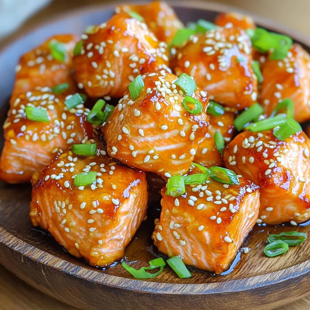 When serving, place the salmon bites on a nice platter. Drizzle a little extra sauce over them for shine. Garnish with finely chopped green onions for color. Adding a slice of lime or lemon on the side brightens the dish and gives a fresh kick.