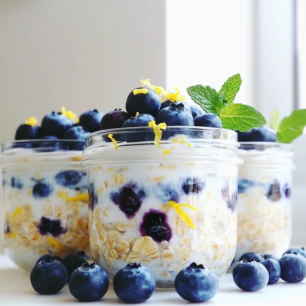 Spoon your overnight oats into bowls or jars for serving. Add extra fresh blueberries on top for color. A light sprinkle of lemon zest gives a lovely finish. Enjoy this healthy breakfast that is both delicious and refreshing!