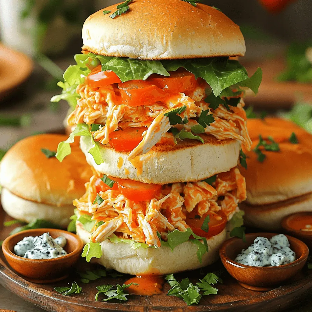 To make the best sliders, coat your chicken well with buffalo sauce. This ensures each bite is packed with flavor. Stir gently when heating the chicken mixture. Overcooking can dry it out, making it less tasty.