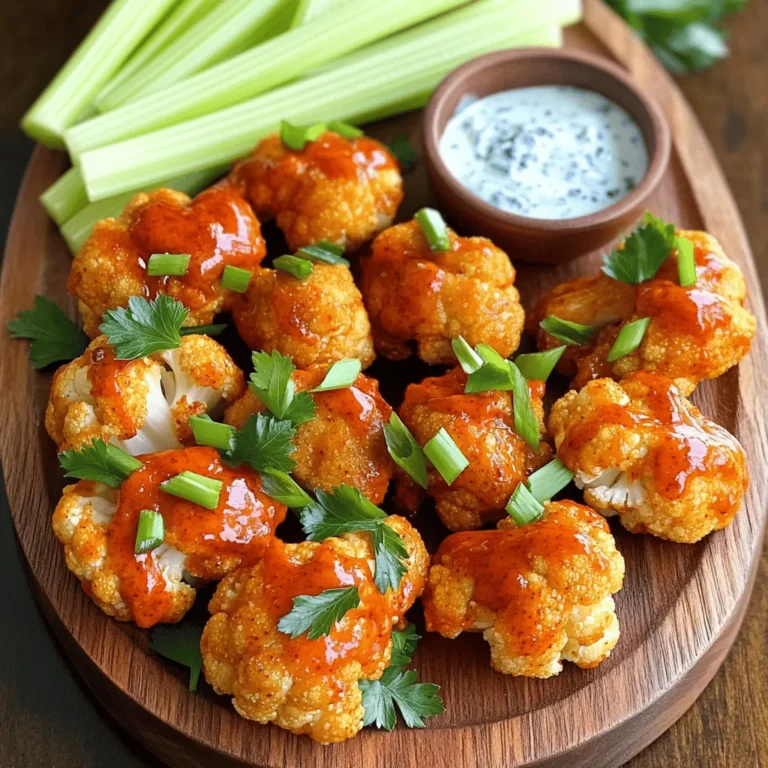 When it comes to serving, don’t skip the celery sticks. They add a refreshing crunch. Pair them with blue cheese or ranch dressing for dipping. You can also sprinkle fresh parsley or chopped green onions on top for a pop of color.Enjoy making these cauliflower wings!