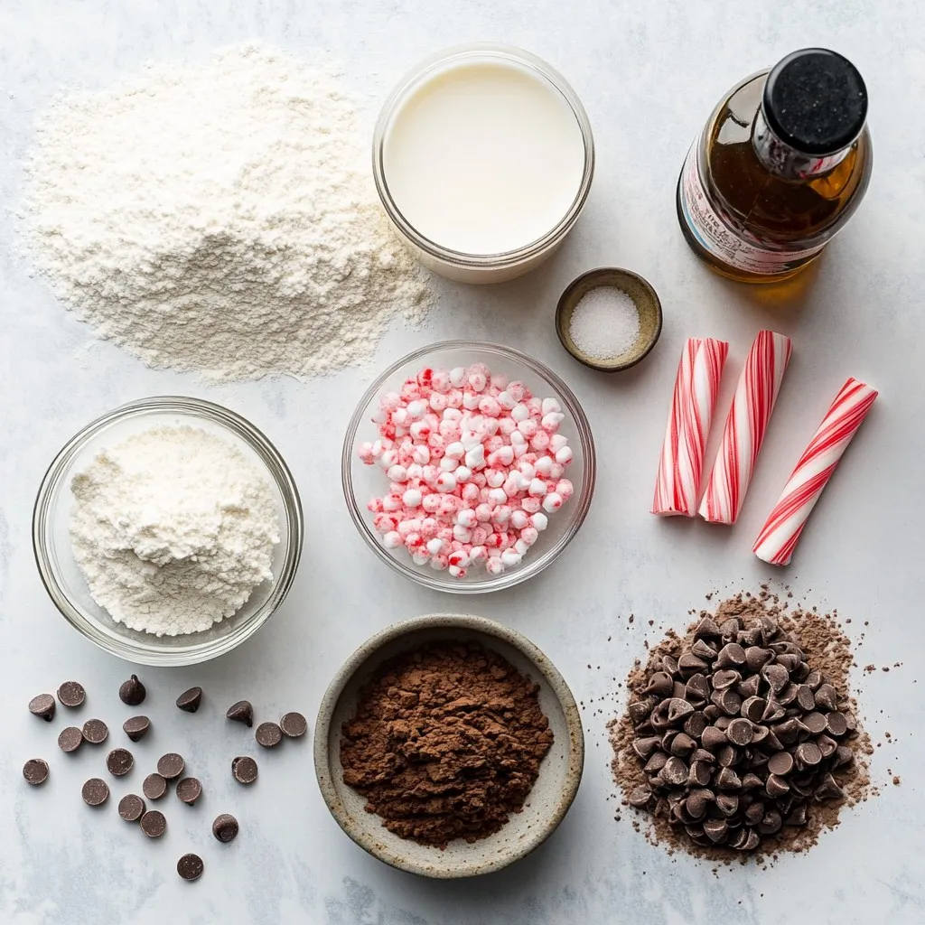 Each ingredient plays an important role. The flour gives the cake structure. Sugar adds sweetness. Cocoa powder brings rich chocolate flavor. Baking powder helps the cake rise. Salt balances the sweetness. Milk and oil keep the cake moist. Peppermint extract adds that festive touch. Chocolate chips give extra joy in every bite.