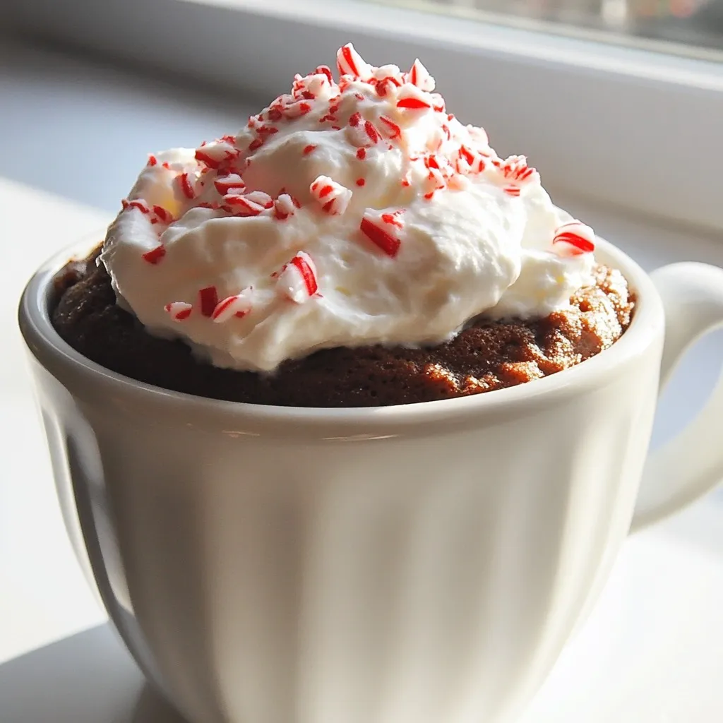 A quick and festive mug cake infused with chocolate and peppermint flavors, perfect for a cozy treat.
