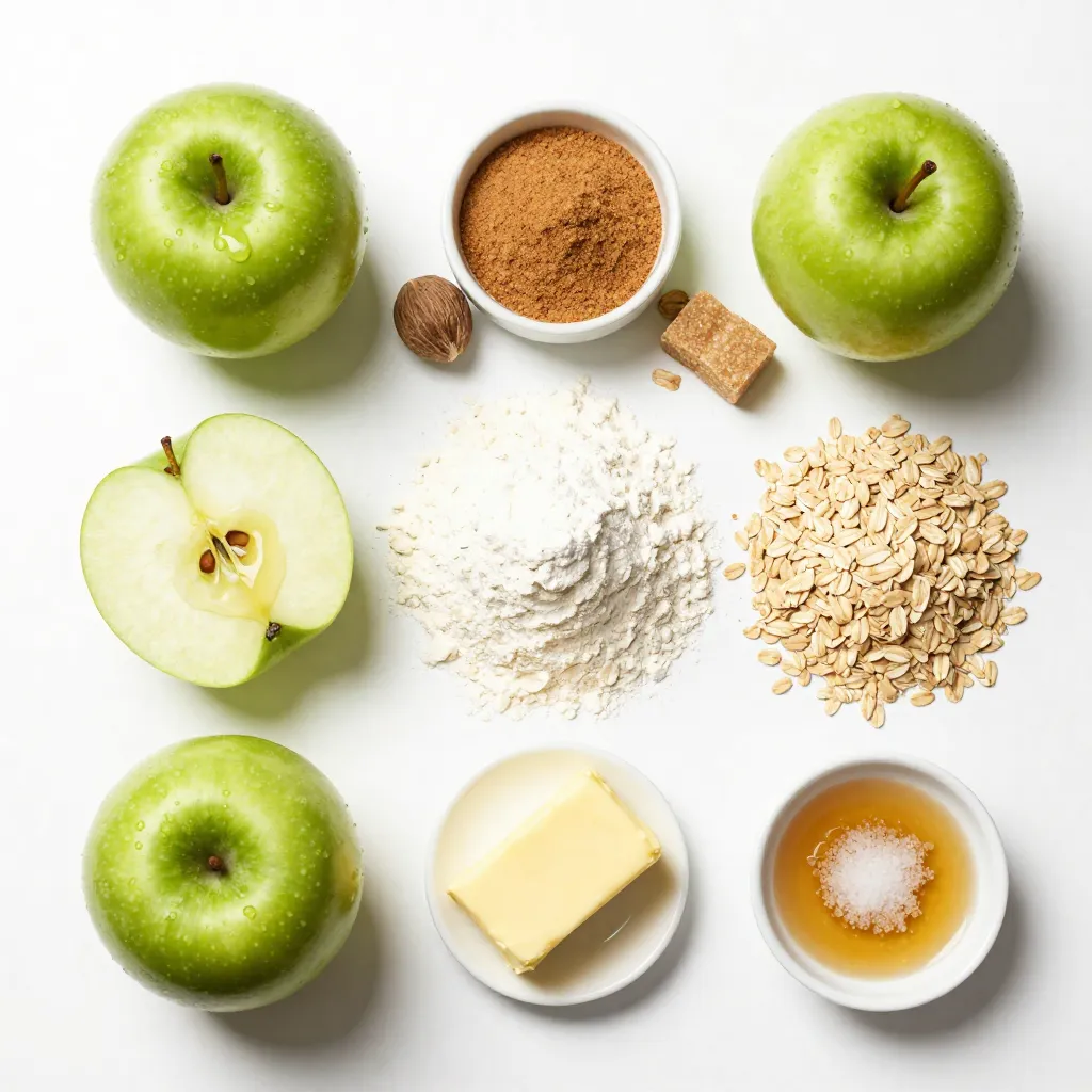 Granny Smith apples shine in this dish. Their tartness balances the sweet crumble. The freshly squeezed lemon juice adds brightness and keeps the apples from browning. Ground cinnamon and nutmeg give warm, cozy notes. Brown sugar offers rich sweetness and depth. Rolled oats create a hearty topping, while all-purpose flour adds structure. Unsalted butter makes everything rich and creamy. Pure vanilla extract enhances all the flavors, and a pinch of salt ties everything together.