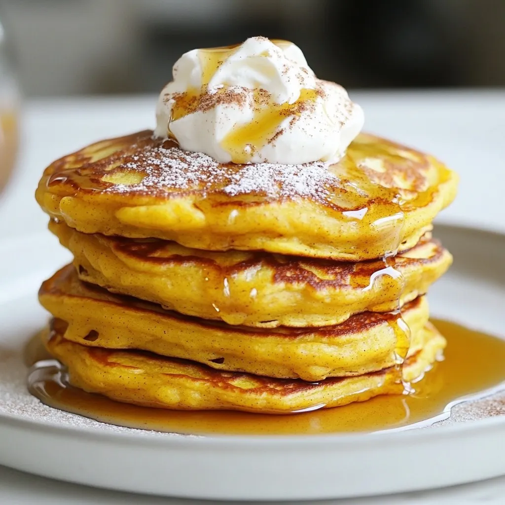 Delicious pancakes infused with pumpkin and a cinnamon swirl, perfect for a cozy breakfast.