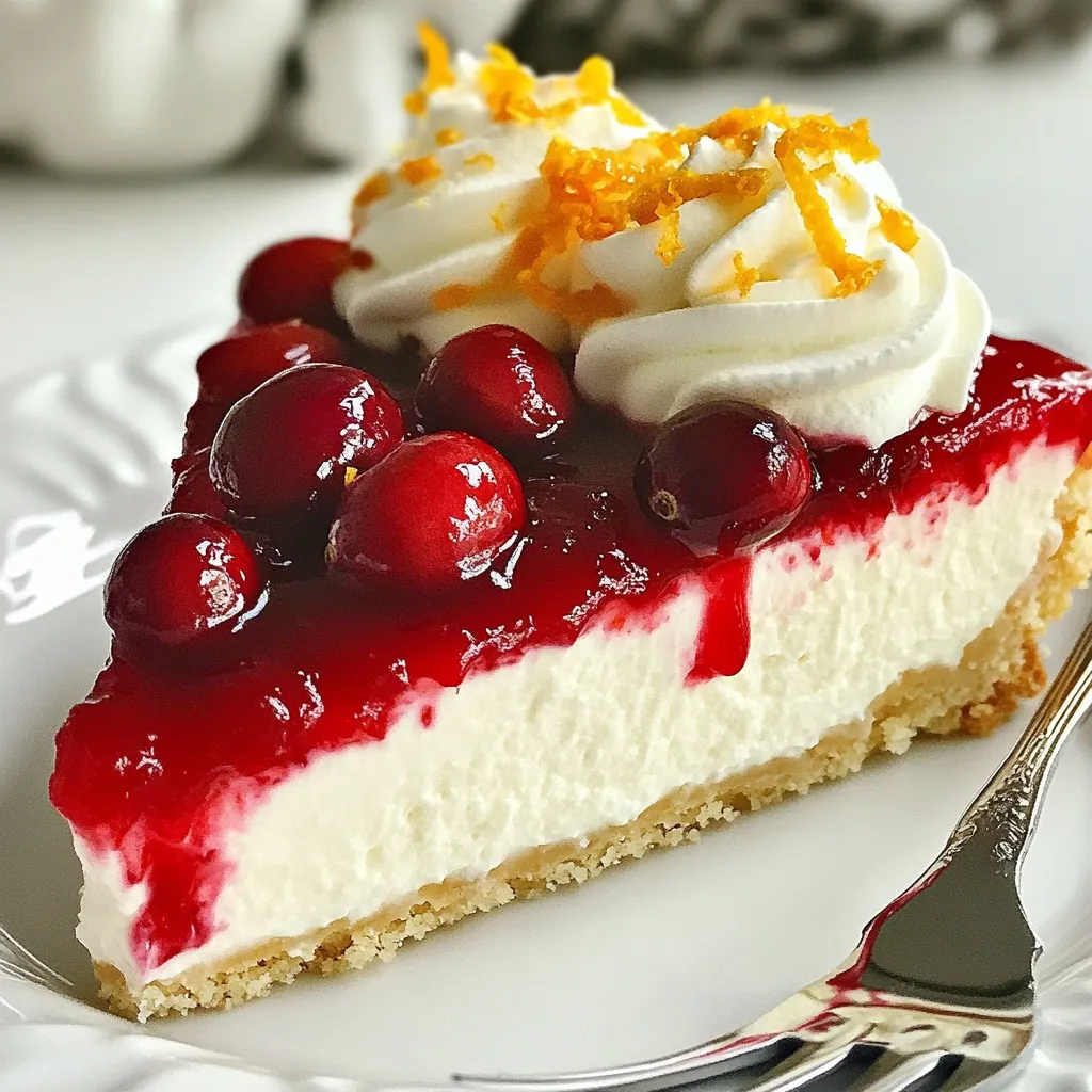 You can make a no-bake version of this cheesecake. Start with the same ingredients but skip the baking step. Use a mix of cream cheese, sugar, and sour cream. After blending, fold in the cranberries and orange juice. Pour this mixture over your crust. Let it chill in the fridge for at least four hours. This option gives you a smooth and creamy treat without the oven.