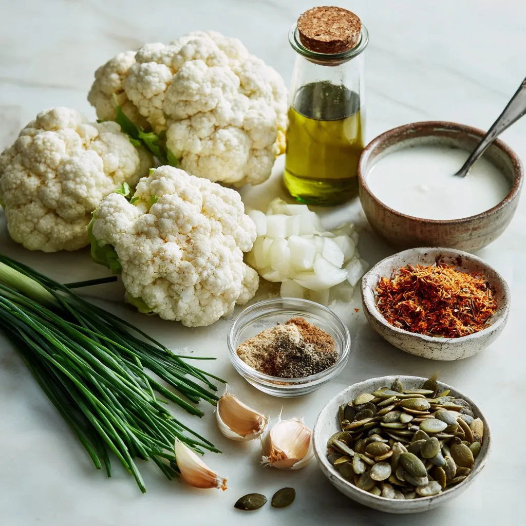 The main ingredients in this creamy roasted cauliflower soup create a warm and cozy dish. Cauliflower is the star here, giving the soup its creamy texture. Olive oil helps roast the cauliflower to golden perfection. Onion and garlic add a wonderful base flavor. Vegetable broth ties it all together. You can choose coconut milk for a dairy-free option or heavy cream for richness. Ground cumin and smoked paprika add depth and warmth. Lastly, salt and pepper enhance all these flavors.