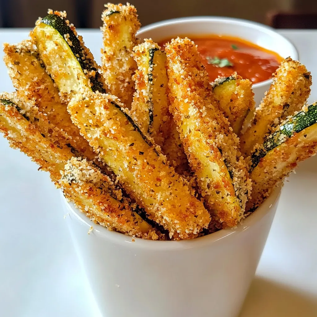 Deliciously crispy zucchini fries coated in panko breadcrumbs and Parmesan cheese.
