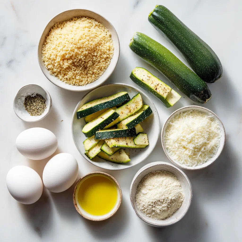 To make crispy Parmesan zucchini fries, gather these ingredients: