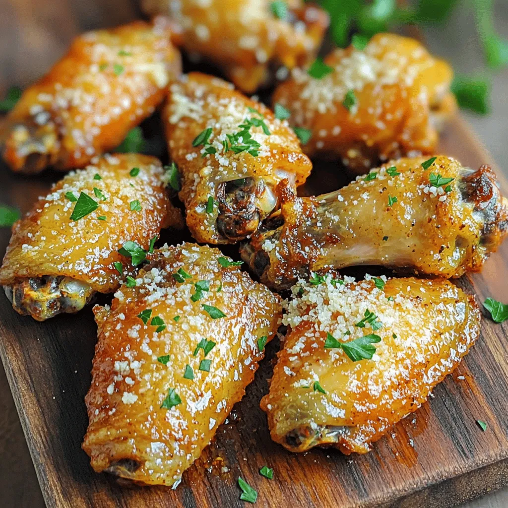 If you enjoy grilling, make grilled garlic parmesan wings. Marinate the wings in the garlic and spice mix. Grill them over medium heat for about 20-25 minutes, turning often. This gives the wings a smoky flavor that is hard to resist.