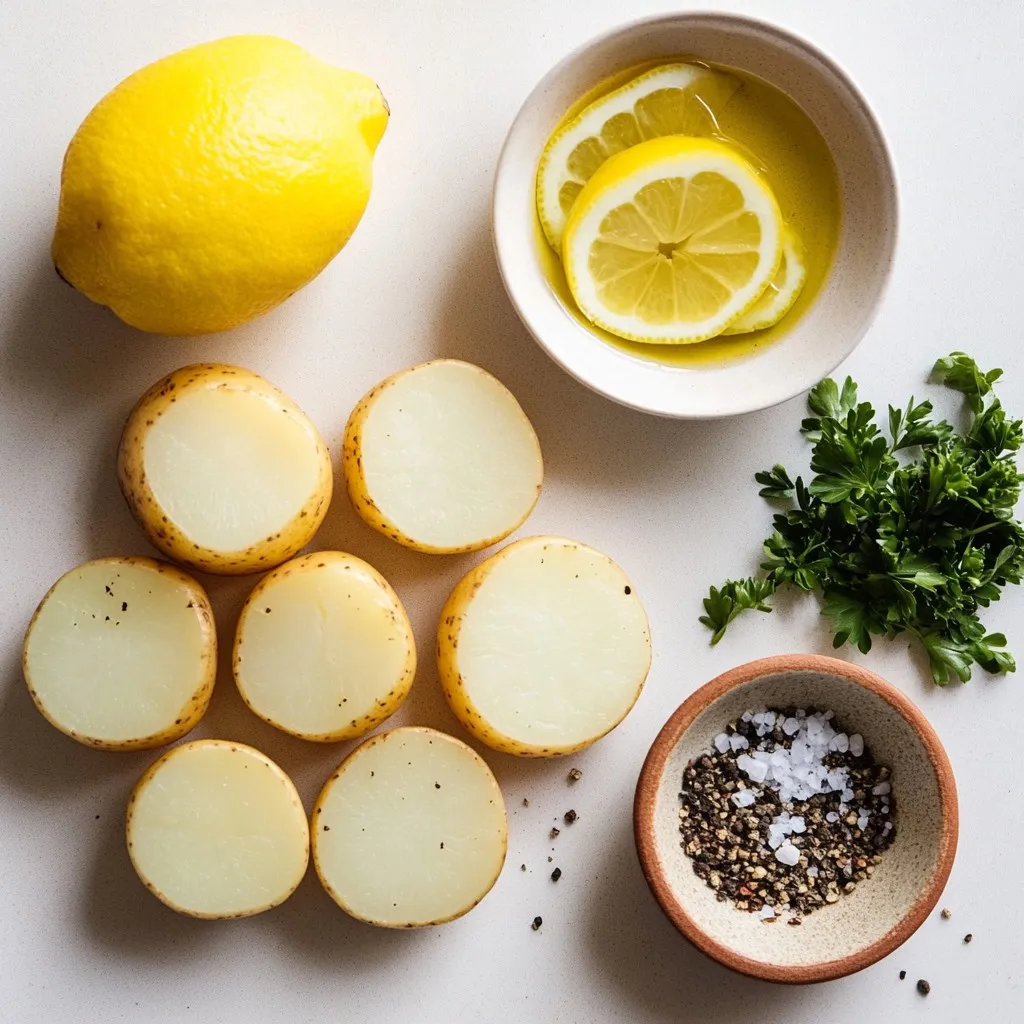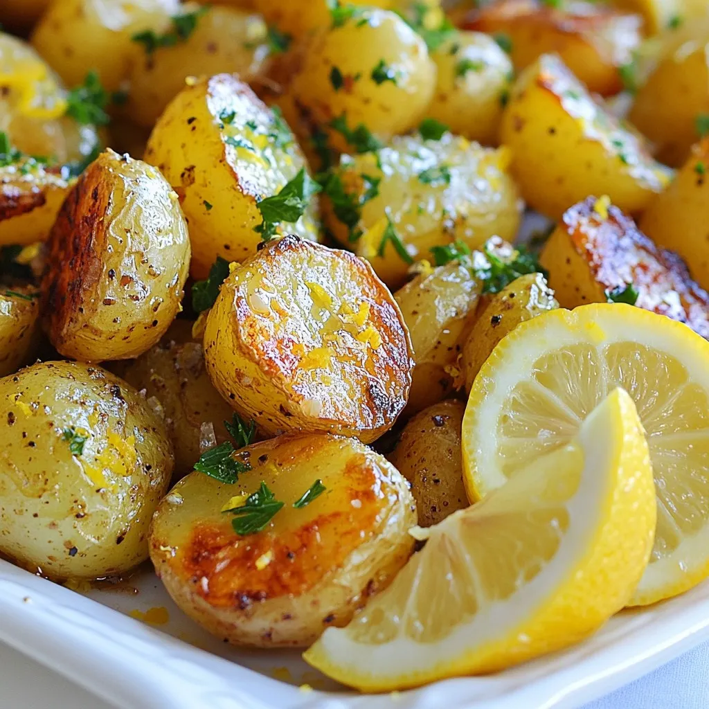 A delicious and tangy side dish featuring roasted baby potatoes with lemon and garlic.