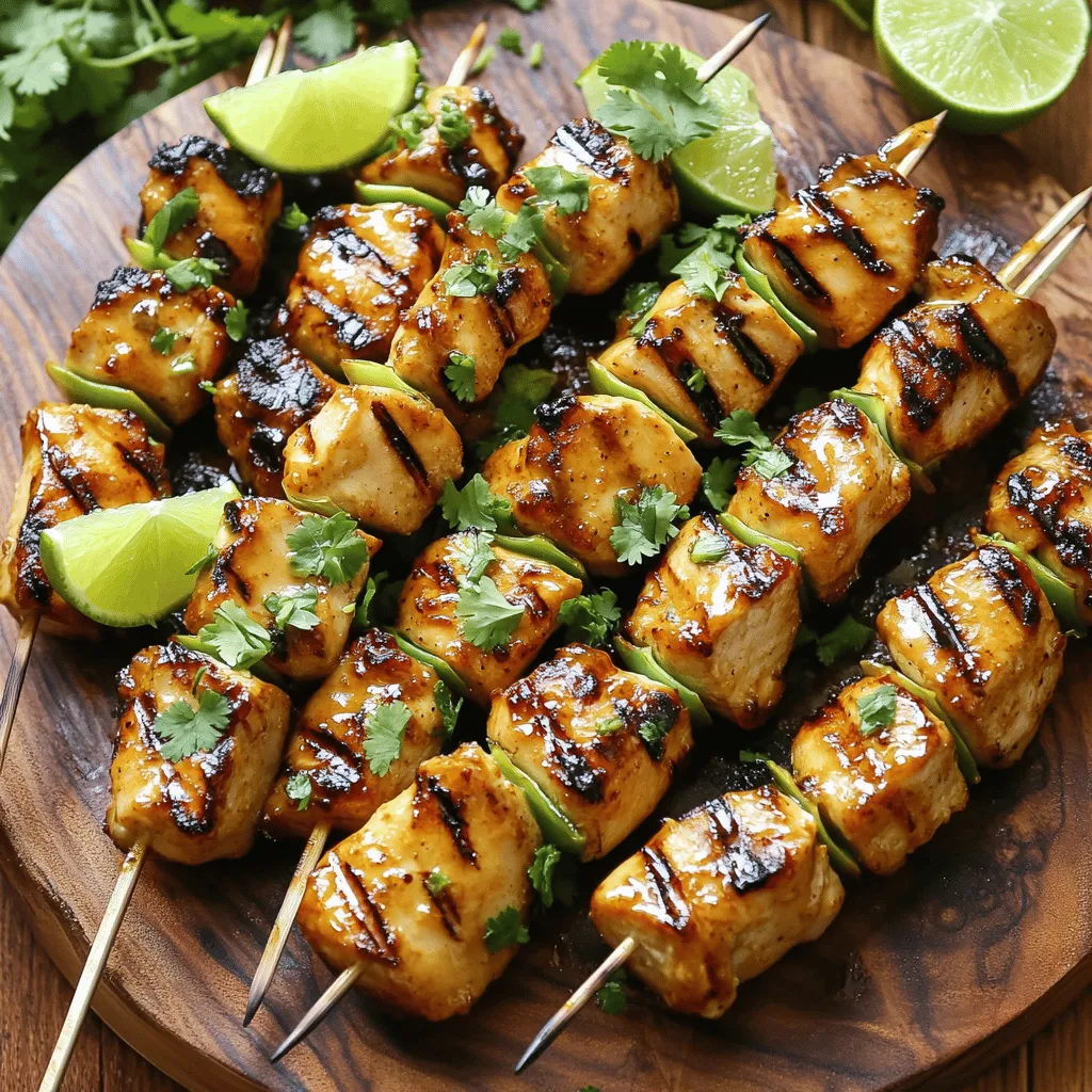For a pretty plate, lay the skewers on a white platter. The contrast makes the colors pop! You can add lime wedges for a fresh touch. Scatter some chopped cilantro around the plate for extra color. Serve with rice, grilled veggies, or a fresh salad to make a complete meal. Enjoy your delicious Honey Lime Grilled Chicken Skewers!