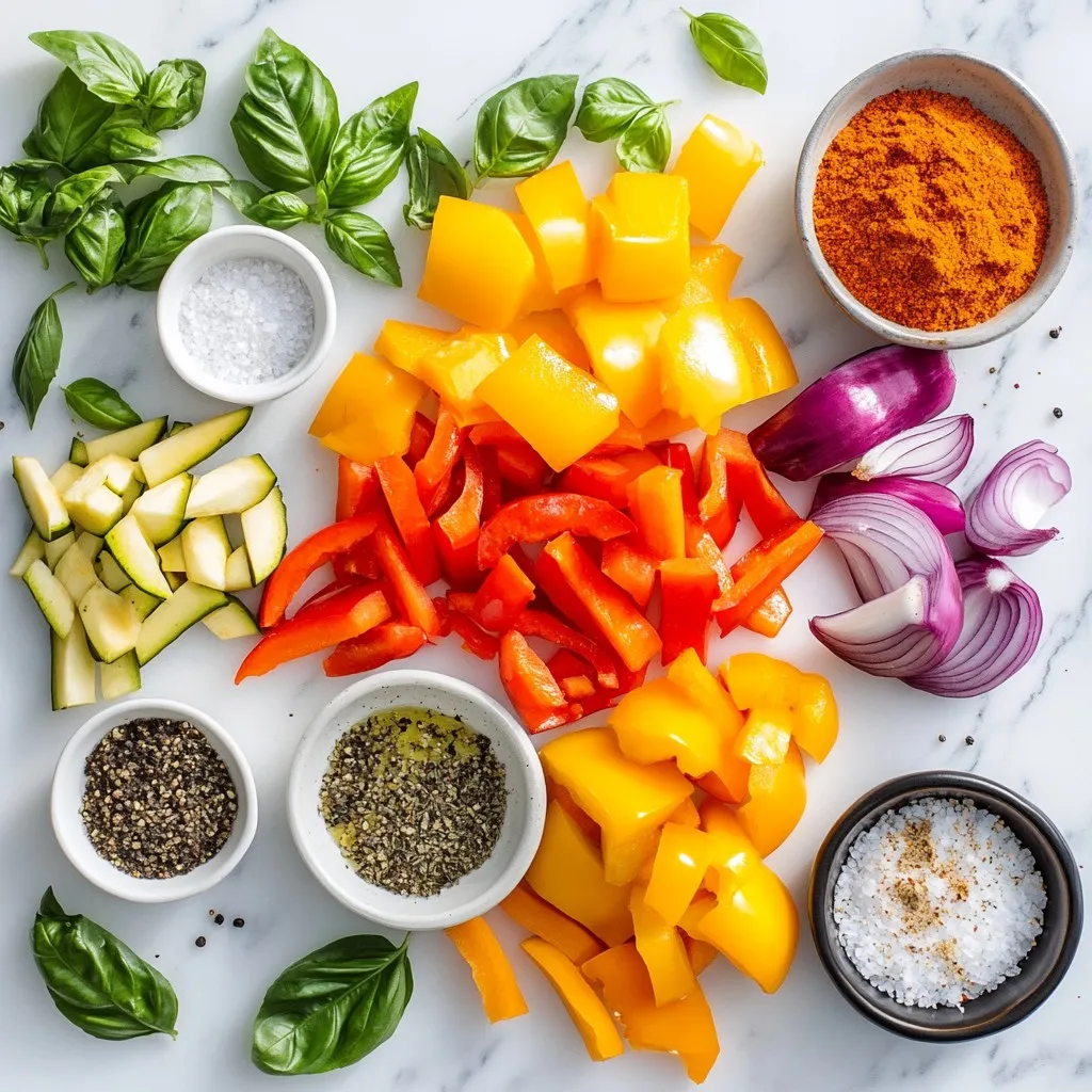 Extra virgin olive oil adds a rich flavor and helps the veggies roast well. Oregano and basil give an authentic Italian touch. Garlic and onion powder enhance the taste without the hassle of chopping. Adjust salt and pepper to your liking.