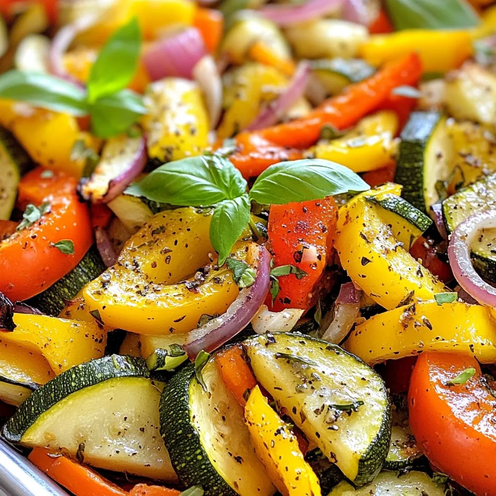 These roasted vegetables pair well with many dishes. Serve them alongside grilled chicken or fish for a balanced meal. They also work great with pasta or grains like quinoa. For a lighter option, serve them over a fresh salad. To create a complete meal, add a simple sauce. A drizzle of balsamic glaze or a squeeze of lemon juice can enhance the flavors. This makes your dish colorful and appetizing.