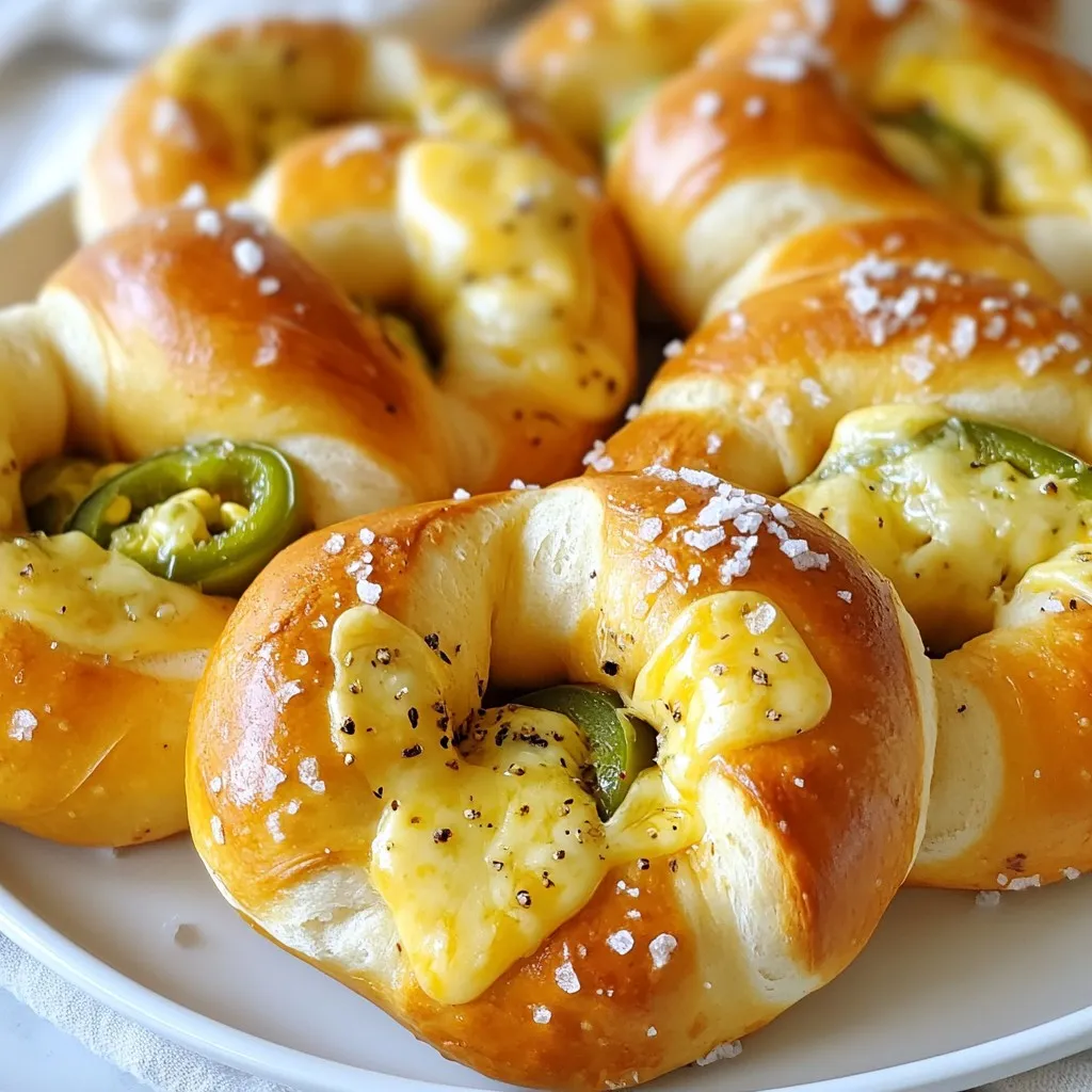 Delicious pretzels filled with spicy jalapeños and sharp cheddar cheese.
