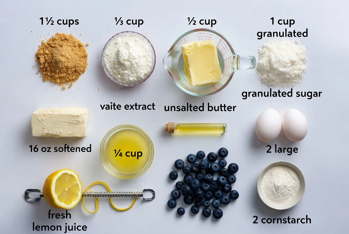 These ingredients work together to create a creamy, sweet, and tangy treat. The graham cracker crumbs form a crunchy base. The cream cheese adds a rich, smooth filling. Fresh blueberries give bursts of flavor. The lemon zest and juice bring brightness. All these elements blend for a delicious dessert.