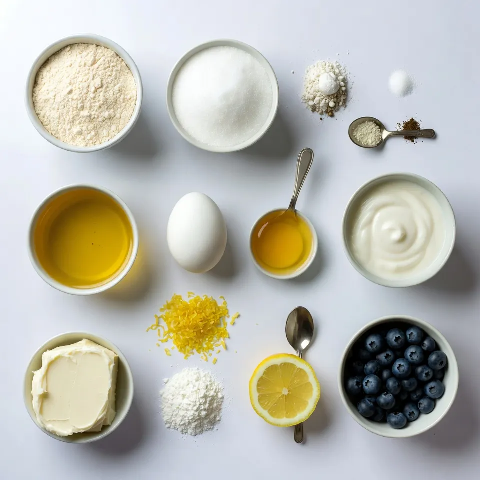 The ingredients for Lemon Blueberry Cheesecake Muffins create a perfect blend of sweet and tart. You start with the dry ingredients. The all-purpose flour gives structure. Granulated sugar adds sweetness. Baking powder and baking soda help your muffins rise. A bit of salt balances the flavors.