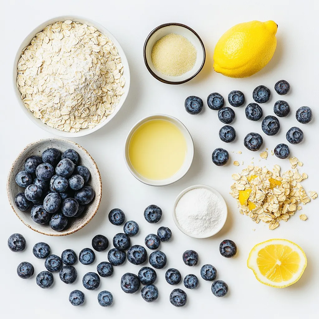 To make Lemon Blueberry Crumble Bars, gather these fresh and simple ingredients. Each one plays a key role in crafting a treat that is both tangy and sweet.