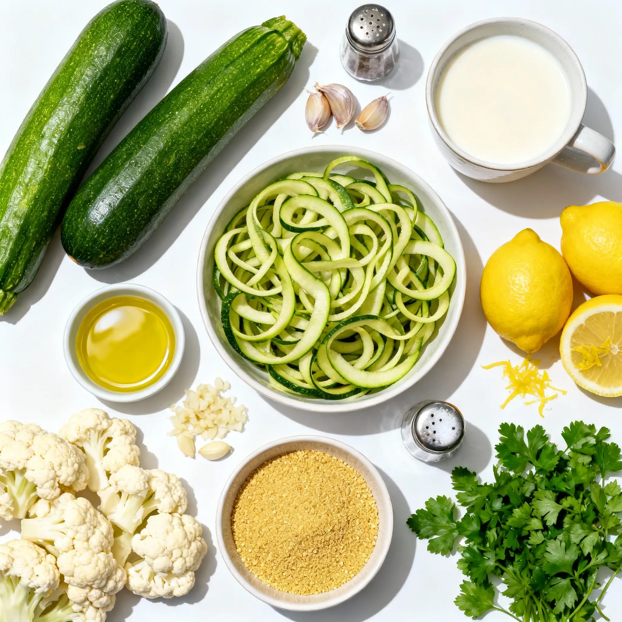 To make Lemon Garlic Zoodle Alfredo, gather these simple ingredients:
