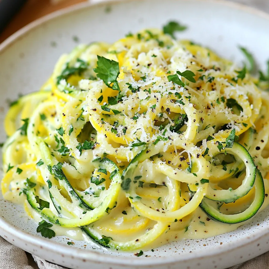 A creamy and delicious alfredo sauce made with zoodles, garlic, and lemon, perfect for a healthy meal.