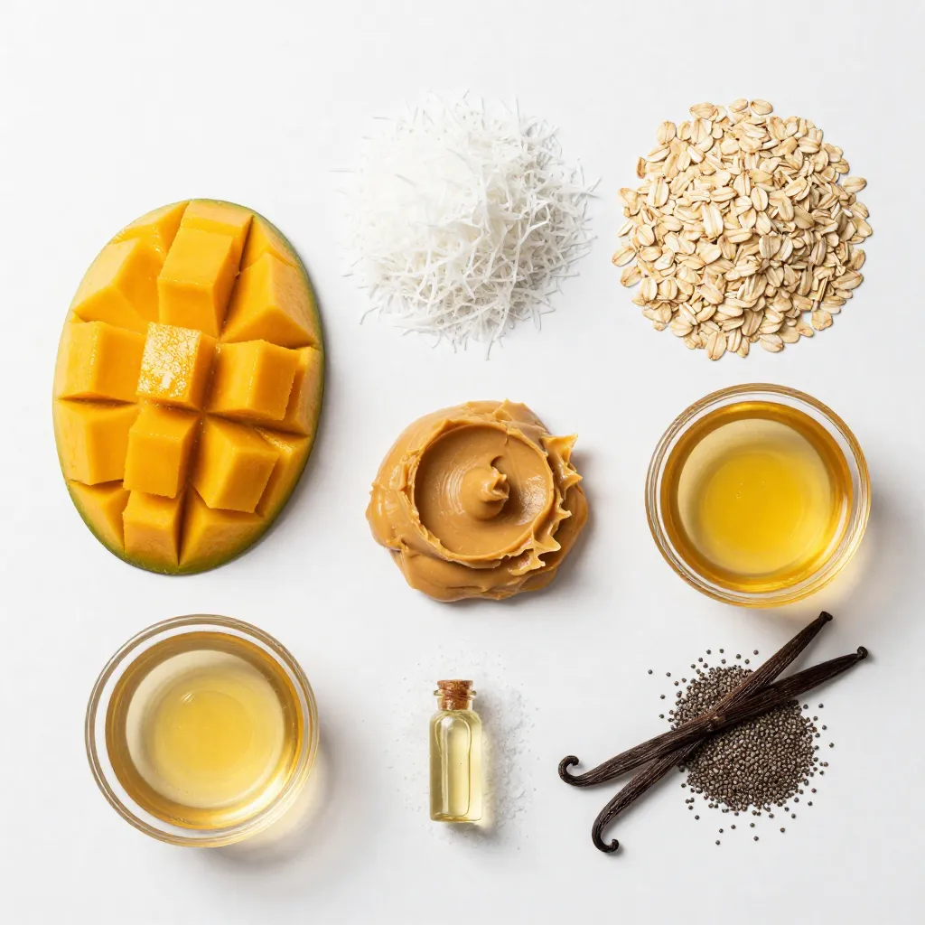 Gather these ingredients, and you are ready to make delicious mango coconut energy bars. They are not only energizing but also easy to prepare. Enjoy your time in the kitchen!