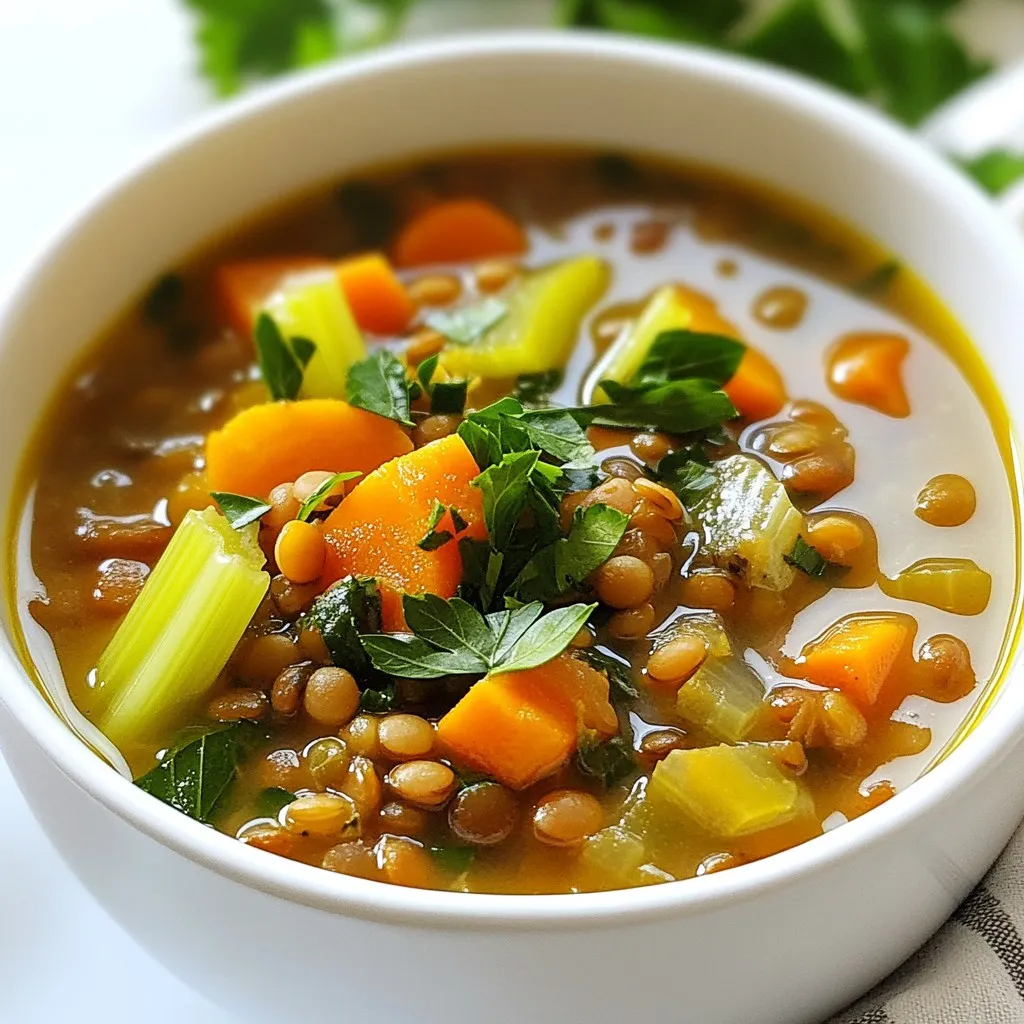 - 1 cup green or brown lentils, thoroughly rinsed - 1 medium onion, finely diced - 2 medium carrots, peeled and diced - 2 celery stalks, diced into small pieces - 3 cloves garlic, minced finely - 1 can (14 oz) diced tomatoes, including their juices - 4 cups rich vegetable broth - 1 teaspoon ground cumin - 1 teaspoon smoked paprika - 1 tablespoon extra virgin olive oil - Salt and freshly cracked black pepper to taste - 2 cups fresh spinach or kale, roughly chopped - Juice of 1 fresh lemon - Fresh parsley, chopped, for garnish You can swap lentils with split peas or chickpeas. For the broth, use chicken broth for more flavor. If you lack fresh herbs, dried herbs work too. Carrots can be replaced with sweet potatoes. If you can't find smoked paprika, regular paprika adds good taste. This soup is rich in protein from lentils. A serving contains about: - Calories: 200 - Protein: 12g - Carbs: 34g - Fiber: 10g - Fat: 5g This dish is low in fat and full of vitamins. The spinach or kale boosts iron and vitamins A and C. The lemon adds vitamin C, helping your body absorb iron better. {{ingredient_image_2}} To start, gather your ingredients. You will need: - 1 cup green or brown lentils, thoroughly rinsed - 1 medium onion, finely diced - 2 medium carrots, peeled and diced - 2 celery stalks, diced into small pieces - 3 cloves garlic, minced finely - 1 can (14 oz) diced tomatoes, including their juices - 4 cups rich vegetable broth - 1 teaspoon ground cumin for warmth - 1 teaspoon smoked paprika for depth of flavor - 1 tablespoon extra virgin olive oil - Salt and freshly cracked black pepper to taste - 2 cups fresh spinach or kale, roughly chopped - Juice of 1 fresh lemon for brightness - Fresh parsley, chopped, for a vibrant garnish Once you have everything, it’s time to prepare. Start by washing the lentils. Rinse them until the water runs clear. Chop your onion, carrots, and celery into small pieces. Mince the garlic finely. Heat the olive oil in a large pot over medium heat. Let it warm for a minute. Add the onion, carrots, and celery. Sauté these veggies for 5 to 7 minutes. Stir them often until they soften and smell great. Next, add the minced garlic. Sauté for one minute. You want the garlic to smell nice but not brown. Now, it’s time to add the other ingredients. Put the rinsed lentils, diced tomatoes, vegetable broth, cumin, and smoked paprika into the pot. Stir everything well. Increase the heat and bring the mixture to a boil. Once it boils, reduce the heat to a gentle simmer. Cover the pot and let it cook for 25 to 30 minutes. The lentils should be tender but still firm. After cooking, fold in the chopped spinach or kale. Stir for another 5 minutes until the greens are wilted. Remove the pot from heat. Squeeze in the fresh lemon juice. Taste your soup and add salt and pepper if needed. Ladle the soup into bowls. Garnish with fresh parsley. Serve hot and enjoy the rich flavors of your Mediterranean lentil soup! One common mistake is not rinsing lentils. Rinsing removes dirt and small stones. It also helps reduce foam while cooking. Another mistake is overcooking the lentils. They should be tender but still hold shape. Stirring too often can also break them apart. Lastly, don’t skip seasoning. Salt and pepper enhance the soup's flavor. To boost flavor, use a rich vegetable broth. Homemade broth is great but store-bought works too. Add your spices early in the cooking process. This allows their flavors to bloom. Using fresh herbs, like parsley, adds brightness. Squeeze fresh lemon juice right before serving. This adds a zesty kick that elevates the soup. Serve the soup hot in deep bowls. A sprinkle of chopped parsley adds color and freshness. Pair it with crusty bread for a complete meal. You can also serve it with a side salad. A dollop of yogurt can add creaminess if desired. Enjoy this nourishing dish with family and friends! Pro Tips Soak Lentils for Better Cooking: Soaking lentils for a few hours before cooking can help them cook more evenly and reduce cooking time. Enhance Flavor with Fresh Herbs: Adding fresh herbs like thyme or oregano at the end of cooking can elevate the flavor of your soup. Adjust Consistency: If you prefer a thicker soup, blend a portion of the soup and stir it back in to achieve your desired texture. Storing Leftovers: This soup stores well in the refrigerator for up to 5 days, and the flavors deepen over time. Just reheat gently! {{image_4}} You can add many vegetables to your Mediterranean lentil soup. Some great choices are zucchini, bell peppers, or even sweet potatoes. Each of these adds unique flavors and textures. You can use 1 cup of diced zucchini or peppers. For sweet potatoes, peel and dice 1 medium potato. They add sweetness and heartiness. If you want to boost the protein, consider adding some cooked chicken, turkey, or tofu. About 1 to 2 cups of shredded chicken or turkey works well. For tofu, use firm tofu, diced into cubes. Add these during the last 10 minutes of cooking. This keeps them from breaking apart. You can play with spices to change the soup's flavor. For a spicier soup, add red pepper flakes. A pinch will bring heat without overwhelming the dish. You can also try adding herbs like thyme or oregano for an herbal touch. Just add 1 teaspoon of dried herbs to the pot during cooking. These simple changes keep your soup fresh and fun! After your meal, let the soup cool down. Pour leftovers into an airtight container. Make sure to seal it well. Store the container in the fridge. The soup stays fresh for up to five days. If you want to keep it longer, freezing is a great option. To freeze the soup, use a freezer-safe container. Leave some space at the top for expansion. Label the container with the date. You can freeze it for up to three months. When you are ready to eat, move it to the fridge overnight to thaw. Reheat the soup on the stove for the best flavor. Pour the soup into a pot over medium heat. Stir it often until it’s hot a