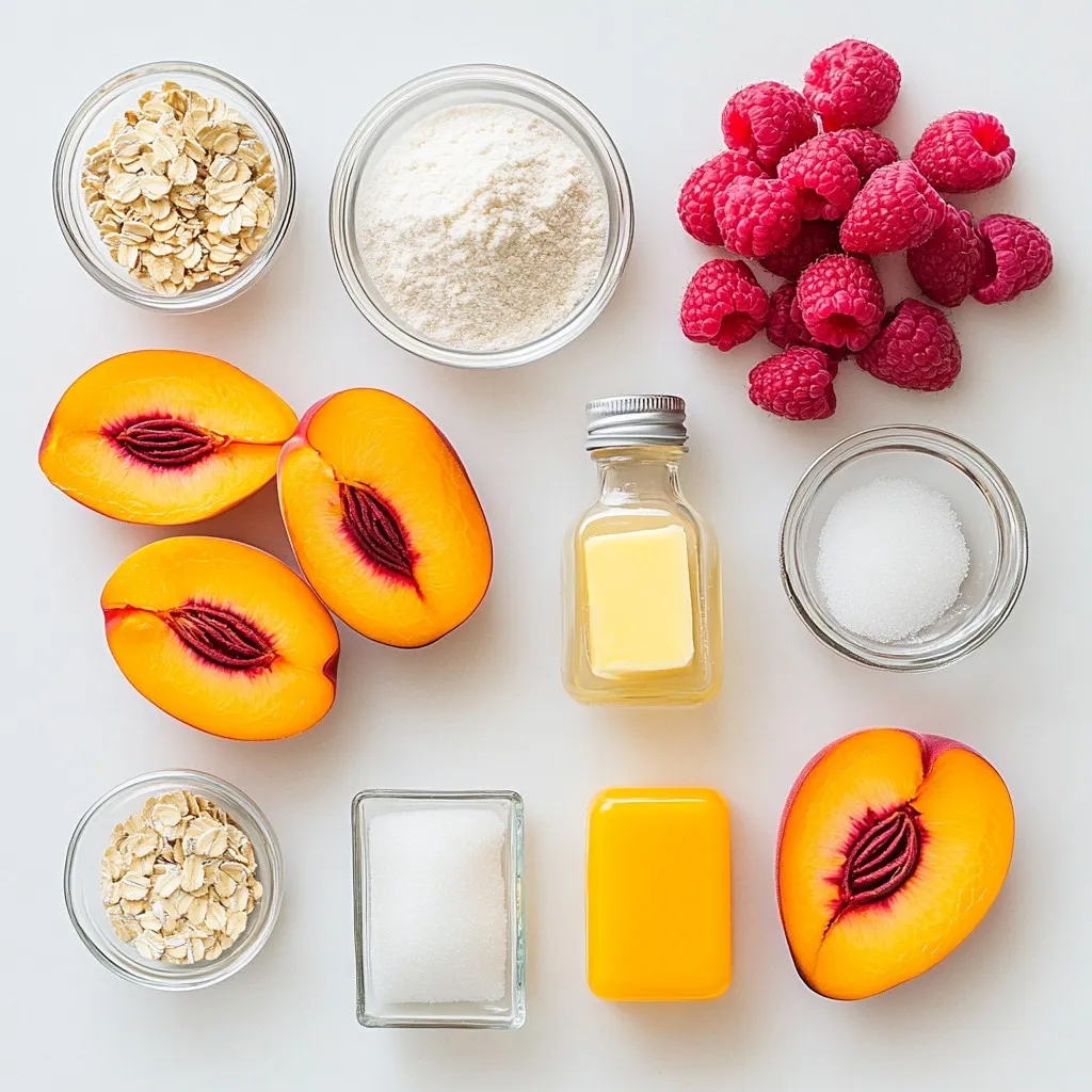 These fresh ingredients bring bright flavors to your dessert. The peaches add sweetness, while the raspberries give a tart kick. The sugar balances all the flavors, and lemon juice brightens the fruit. The vanilla extract adds warmth and depth.