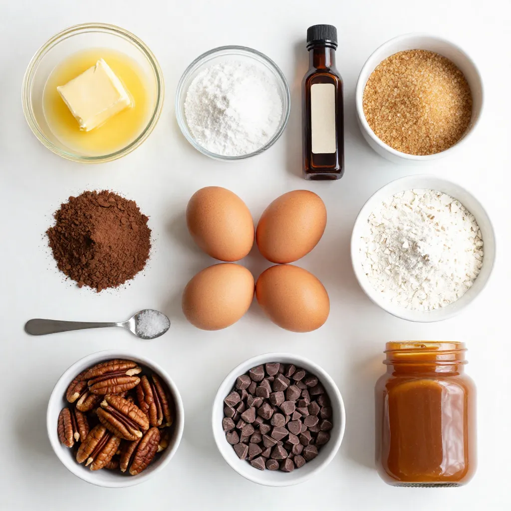 To create these pecan pie brownies, you need a mix of simple ingredients. Each one adds to the rich flavor and texture. Here’s what you’ll need: