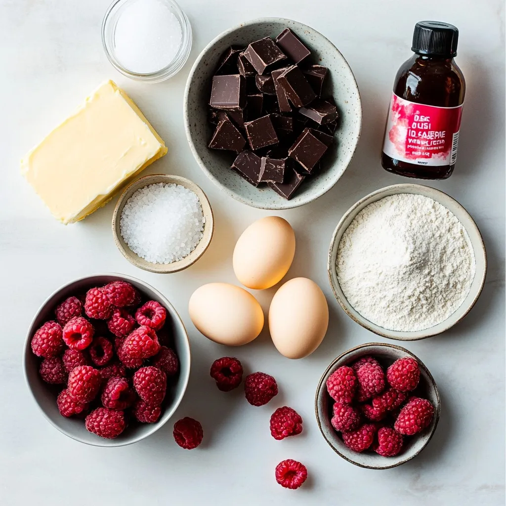 You need these main ingredients to create the rich brownie base. The butter adds moisture. The dark chocolate gives a deep flavor. Sugar sweetens and helps form that nice crust. Eggs bind the mix together. Flour provides structure, while raspberries add a fresh burst of flavor.