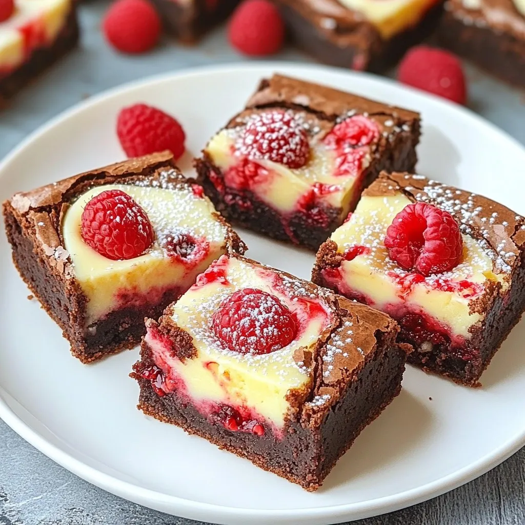 For an elegant touch, serve the brownies on a decorative plate, lightly dusted with powdered sugar. Top with additional fresh raspberries for a burst of color and freshness, and a sprig of mint for an extra flourish!