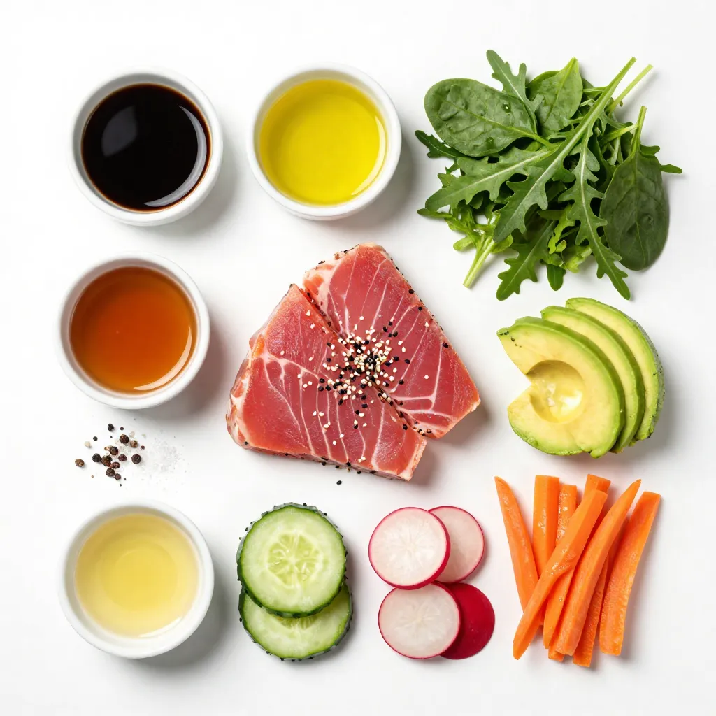 For this salad, you need two fresh ahi tuna steaks. Each steak should weigh about six ounces. Choose bright, deep red tuna for the best flavor. Freshness is key to a great dish.