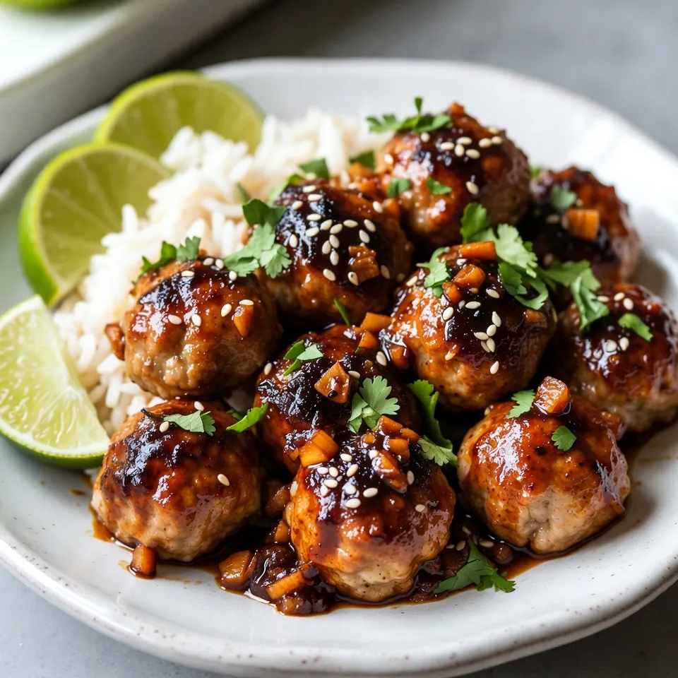 Once finished, remove the meatballs and sprinkle them with chopped cilantro and sesame seeds. For a great presentation, serve them on a large platter with fluffy jasmine rice. Add lime wedges for a splash of color. Drizzling extra hoisin or sweet chili sauce over the top makes them even more tempting!