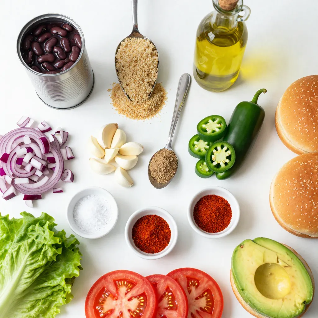 - 1 can (15 oz) black beans, thoroughly drained and rinsed - 1/2 cup cooked quinoa (preferably cooled) - 1/2 cup breadcrumbs (can substitute with gluten-free breadcrumbs if needed) - 1/4 cup red onion, finely diced - 2 cloves garlic, minced - 1 jalapeño, seeds removed and finely chopped - 1 teaspoon ground cumin - 1 teaspoon smoked paprika - 1/2 teaspoon chili powder - 1/4 teaspoon salt - 1/4 teaspoon freshly ground black pepper These ingredients create a tasty and hearty black bean burger. Black beans add protein and fiber. Quinoa gives extra texture and nutrition. Breadcrumbs hold the burger together. Red onion, garlic, and jalapeño bring in the flavor. The red onion adds sweetness. Garlic gives a nice kick. Jalapeño adds heat. The spices transform these burgers into a flavor-packed meal. Ground cumin adds warmth. Smoked paprika brings a hint of smokiness. Chili powder adds depth. Finally, salt and pepper enhance all the flavors. Using fresh ingredients makes a big difference. You can also adjust spice levels. Add more jalapeño for extra heat or swap spices to match your taste. Enjoy experimenting! {{ingredient_image_2}} - Start by mashing the black beans in a large bowl. Use a fork or a potato masher. Aim for mostly smooth beans, but keep some chunks for texture. - Next, add the cooked quinoa, breadcrumbs, red onion, garlic, and jalapeño to the bowl. Sprinkle in the ground cumin, smoked paprika, chili powder, salt, and black pepper. Mix everything together well until you have a uniform blend. - Now, divide the mixture into four equal parts. Shape each part into a patty. If your mixture feels sticky, add a bit more breadcrumbs until it holds together well. - Heat olive oil in a non-stick skillet over medium heat. Once the oil shimmers, place the patties in the skillet. - Cook each patty for about 4-5 minutes on one side. Flip and cook for another 4-5 minutes until golden brown and heated through. - If you like, toast your burger buns in the skillet until they are lightly browned. This adds a nice crunch! Now you’re ready to enjoy your spicy black bean burgers! To get the right texture, start by adjusting the breadcrumbs. If your mixture is too wet, add more breadcrumbs. This helps the patties hold their shape. If it’s too dry, add a splash of water or a bit more black beans. You want a mix that is moist but not falling apart. This balance makes for a great bite. Spice it up with extra flavors! You can add more spices like cayenne pepper for heat or garlic powder for richness. Consider toppings too. Slices of jalapeño or a dollop of spicy mayo can elevate your burger. Fresh herbs like cilantro can add brightness. Get creative with what you love! Pair these burgers with sides that complement their bold flavor. Crispy sweet potato fries or a bright green salad make great matches. For presentation, serve the burgers on a stylish board. Add a sprinkle of fresh cilantro on top for color. A colorful plate makes each meal feel special. Pro Tips Adjusting Spiciness: If you prefer a milder burger, reduce the amount of jalapeño or remove the seeds entirely. You can also swap it with a mild bell pepper for added flavor without the heat. Binding the Patties: If the mixture feels too crumbly, add a little more mashed black beans or a splash of water to help bind the ingredients together, ensuring a perfect patty shape. Make Ahead: Prepare the burger patties in advance and store them in the refrigerator for up to 24 hours. You can also freeze them for up to 3 months; just make sure to separate each patty with parchment paper. Serving Suggestions: Elevate your burger experience by offering a variety of toppings like pickled onions, spicy mayo, or even a slice of pepper jack cheese for an extra kick! {{image_4}} You can easily change some ingredients to fit your needs. Here are a few options: - Gluten-free options: Use gluten-free breadcrumbs instead of regular ones. This keeps the burger tasty and friendly for those with gluten issues. - Vegan variations: For a vegan twist, simply skip the breadcrumbs made from eggs. Make sure to check the label on your bread to ensure it's vegan. Want to spice things up? Here are some fun ideas: - Adding different peppers: Use other peppers like bell peppers or serrano for unique flavors. Each pepper brings its special taste. - Herbs and spices modifications: Feel free to add fresh herbs like cilantro or parsley. You can also switch spices, like adding cayenne for more heat or oregano for a different flavor. You have options for how to cook your burgers. Here’s how: - Grilling vs. frying: Grilling adds a nice smoky flavor. Frying gives a crispy texture. Both ways work well, so choose what you like best. - Baking options: You can also bake the patties. Place them on a lined baking sheet and bake at 400°F for 20-25 minutes until golden brown. This method is healthier and easy. Feel free to mix and match these ideas to make your spicy black bean burgers fun and unique! You can keep leftover patties in the fridge. Place them in an airtight container. They stay fresh for up to three days. To reheat, just warm them in a skillet or microwave. This way, you can enjoy them again without losing flavor. To freeze the patties, let them cool completely first. Then, wrap each patty in plastic wrap. Place the wrapped patties in a freezer bag. They can last up to three months in the freezer. When you want to eat them, just thaw them overnight in the fridge. Reheat them in a skillet for the best taste. The shelf life of the main ingredients varies. Black beans last about three years if canned. Quinoa can last up to five years when stored properly. Breadcrumbs typically stay fresh for six months. Always check the expiration dates on your ingredients to ensure freshness. Yes, you can make these burgers ahead of time. Here are some meal prep tips: - Make the patties: Follow the recipe and shape the patties. - Store them: Place the uncooked patties in an airtight container.