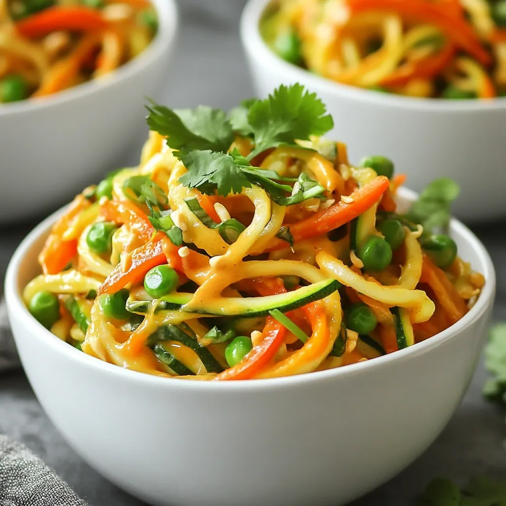 A delicious and healthy dish featuring spiralized zucchini noodles tossed in a spicy peanut sauce with fresh vegetables.