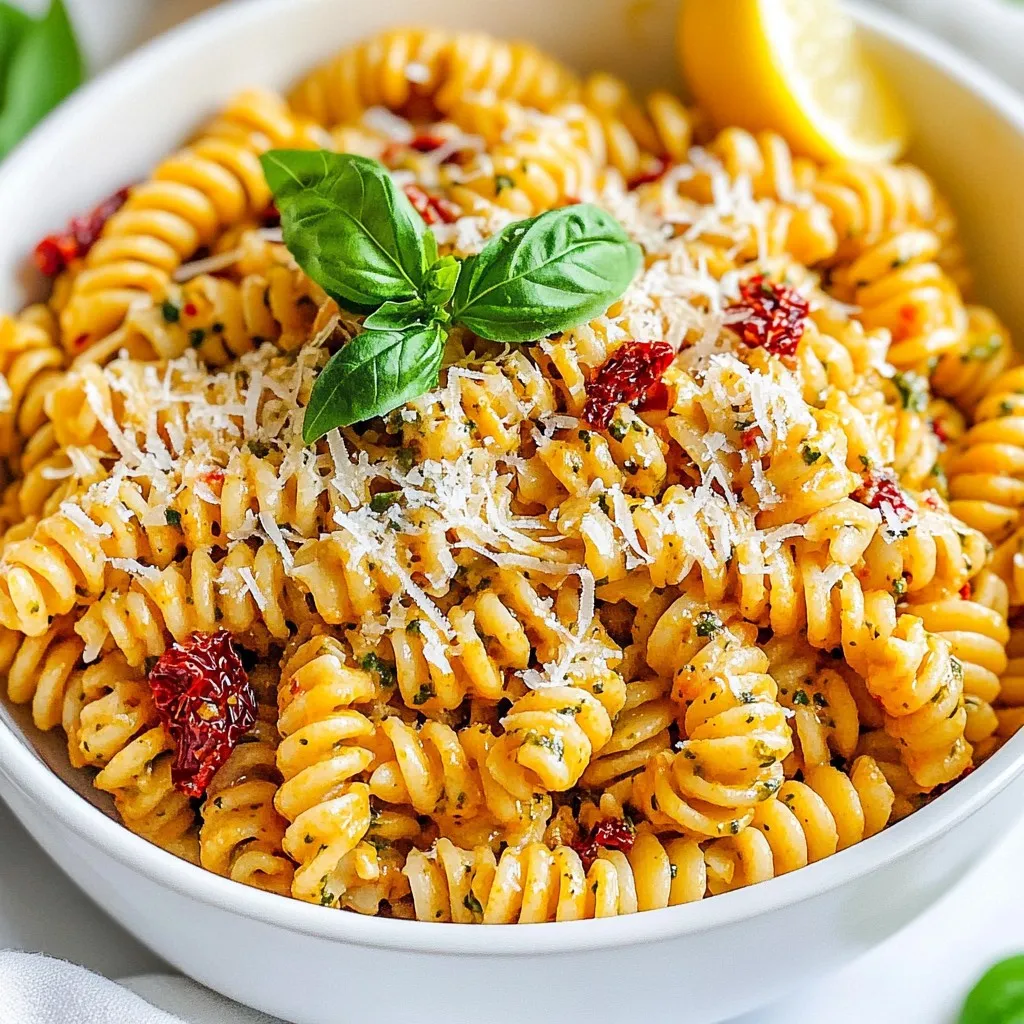 To make this dish even more exciting, try adding protein. Grilled chicken or shrimp pairs perfectly with the sun-dried tomato pesto. Simply cook them separately, then mix them in with the pasta. You can also add more veggies for texture. Spinach adds a nice pop of color and nutrition. Bell peppers bring a sweet crunch. Just sauté them lightly before mixing into your pasta. These changes keep the dish fresh and fun!