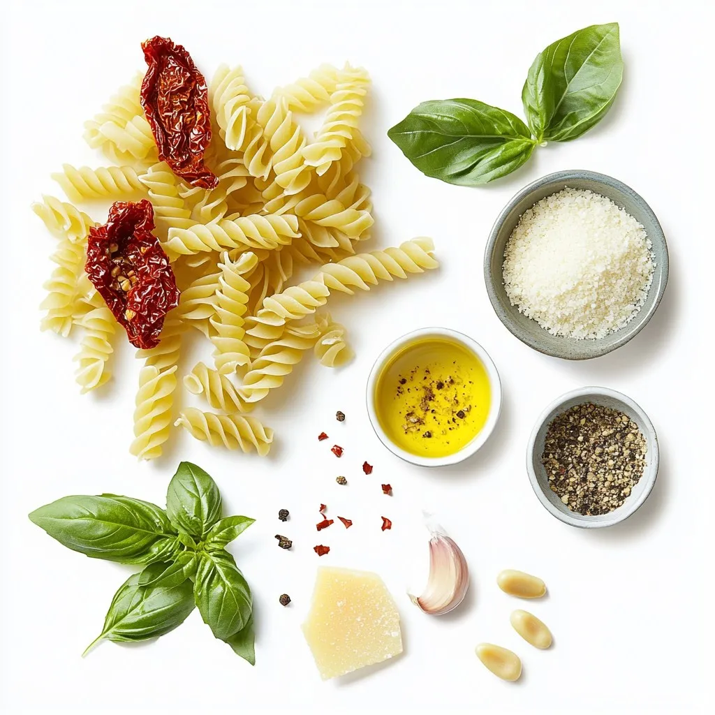 When making sun-dried tomato pesto pasta, choose your pasta. Fusilli and penne work great. The shapes hold the sauce well. Next, grab sun-dried tomatoes. Use those packed in oil for added flavor. Drain and chop them up roughly.
