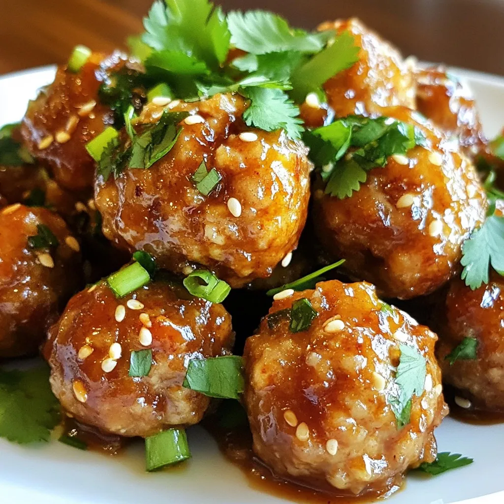 To make these tasty meatballs, gather these key items: - 1 lb ground chicken or turkey - 1/2 cup panko breadcrumbs - 1/4 cup freshly grated Parmesan cheese - 1 tablespoon fresh ginger, finely minced - 2 cloves garlic, finely minced - 1 teaspoon salt - 1/2 teaspoon freshly ground black pepper - 1/4 cup fresh cilantro, chopped (plus extra for garnish) - 1/4 cup green onions, chopped (white and green parts separated) - 1/4 cup sweet chili sauce - 2 tablespoons soy sauce - 1 tablespoon rice vinegar - 1 tablespoon sesame oil - 1 tablespoon cornstarch mixed with 2 tablespoons water (for thickening) - Toasted sesame seeds for garnish You can add more depth to your meatballs with these extras: - A splash of lime juice for brightness - Chopped bell peppers for crunch - Crushed red pepper flakes for heat - Minced herbs like parsley or basil for freshness To make this recipe, you’ll need: - A large mixing bowl for combining ingredients - A baking sheet lined with parchment paper - A small saucepan for the glaze - A meat thermometer to check doneness - A mixing spoon or spatula for stirring These ingredients and tools set you up for a fun cooking experience. Enjoy making these sweet chili glazed meatballs! {{ingredient_image_2}} Start by mixing all the meatball ingredients in a large bowl. Use 1 pound of ground chicken or turkey. Add 1/2 cup of panko breadcrumbs and 1/4 cup of grated Parmesan cheese. Next, add 1 tablespoon of minced ginger and 2 cloves of minced garlic. Season with 1 teaspoon of salt and 1/2 teaspoon of black pepper. Then, mix in 1/4 cup of chopped cilantro and the white parts of 1/4 cup of green onions. Be gentle when mixing. You want the ingredients combined without overworking them. Preheat your oven to 400°F (200°C). Line a baking sheet with parchment paper. This helps prevent sticking. Now, form the mixture into 1-inch meatballs. Place each meatball on the baking sheet. Bake them for 15 to 18 minutes. They should be golden brown and reach 165°F (74°C) inside. Use a meat thermometer to check the temperature. While your meatballs bake, make the sweet chili glaze. In a small saucepan, mix 1/4 cup of sweet chili sauce, 2 tablespoons of soy sauce, 1 tablespoon of rice vinegar, and 1 tablespoon of sesame oil. Heat this over medium heat. Stir often until it starts to simmer. Then, stir in the cornstarch mixture. Cook for another 1 to 2 minutes, stirring continuously. The glaze should thicken nicely. When the meatballs are done baking, move them to a large bowl. Pour the sweet chili glaze over them. Toss gently until all meatballs are well coated. For serving, add toasted sesame seeds, more chopped cilantro, and the green tops of the green onions for a nice touch. Enjoy your sweet chili glazed meatballs hot! To make juicy meatballs, use ground chicken or turkey. These meats stay moist when cooked. Mix ingredients gently to avoid tough meatballs. Overmixing dries them out. Ensure you measure the panko breadcrumbs accurately. This adds lightness to the meatballs. Baking at 400°F (200°C) cooks them evenly. Use a meat thermometer to check for doneness. Aim for 165°F (74°C) inside. To make this recipe easier, gather these tools: - Large mixing bowl - Baking sheet - Parchment paper - Meat thermometer - Small saucepan - Whisk Using these tools simplifies the process. The parchment paper keeps meatballs from sticking. A meat thermometer ensures you cook them perfectly. Serve your meatballs on a bright platter. Drizzle extra sweet chili glaze on top. This adds shine and flavor. Sprinkle toasted sesame seeds for crunch. Add chopped cilantro and green onions for color. These small touches make the dish look great. You can also serve meatballs with rice or noodles. This adds a nice base to the meal. Enjoy your tasty and beautiful creation! Pro Tips Use Cold Ingredients: Ensure that your ground chicken or turkey is cold when mixing. This helps the meatballs hold their shape better while cooking. Experiment with Spices: Feel free to add additional spices like red pepper flakes or cumin to enhance the flavor profile of the meatballs. Check for Doneness: Always use a meat thermometer to check if the meatballs have reached an internal temperature of 165°F (74°C) to ensure they are fully cooked. Make Ahead: You can prepare the meatballs in advance and freeze them. Just bake them straight from the freezer, adding a few extra minutes to the cooking time. {{image_4}} You can switch up the meat in your meatballs. Ground beef or pork works great. Each protein brings its own flavor. If you prefer a lighter option, try ground turkey. For a vegetarian version, use lentils or a meat substitute like tofu. Just remember to adjust the cooking time for different proteins. Want to add some heat? You can mix in red pepper flakes or sriracha. This will give your meatballs an extra kick. You could also add chopped jalapeños for a fresh taste. If you like sweetness, add some honey or brown sugar to the glaze. This adds layers of flavor that everyone will love. These meatballs are versatile! Serve them as appetizers at a party. Just put toothpicks in for easy eating. You can also make them a main dish. Serve over rice or noodles for a filling meal. Want to impress? Thread them onto skewers and grill them for a fun twist. To keep your sweet chili glazed meatballs fresh, place them in an airtight container. Make sure they cool to room temperature before sealing. This helps prevent moisture buildup. You can store them in the fridge for up to three days. When you are ready to enjoy them, grab a few meatballs and heat them up! Freezing is a great option for longer storage. First, let the meatballs cool completely. Then, arrange them in a single layer on a baking sheet. Freeze them for about an hour until firm. Once frozen, transfer them to a freezer-safe bag or container. This method helps to avoid clumping. You can keep them in the freezer for up to three months. When it’s time to eat your frozen meatballs, you