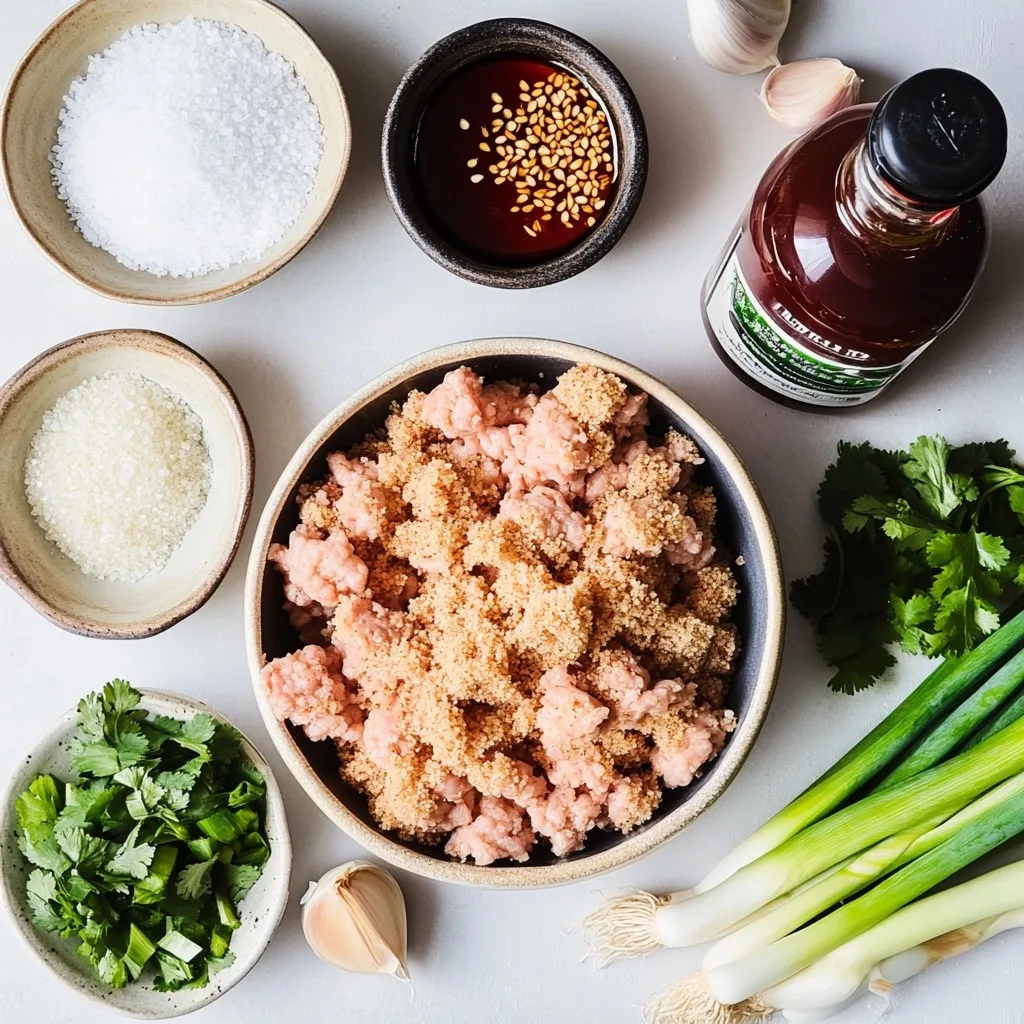 Start by mixing all the meatball ingredients in a large bowl. Use 1 pound of ground chicken or turkey. Add 1/2 cup of panko breadcrumbs and 1/4 cup of grated Parmesan cheese. Next, add 1 tablespoon of minced ginger and 2 cloves of minced garlic. Season with 1 teaspoon of salt and 1/2 teaspoon of black pepper. Then, mix in 1/4 cup of chopped cilantro and the white parts of 1/4 cup of green onions. Be gentle when mixing. You want the ingredients combined without overworking them.