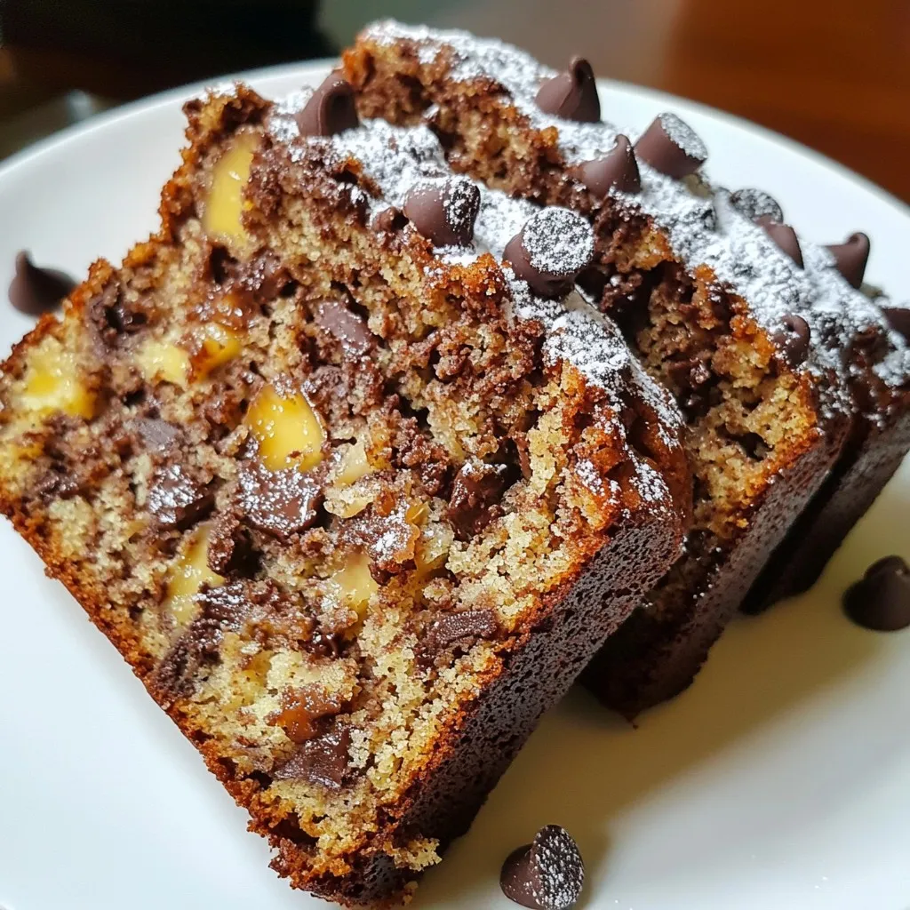 A delightful bread combining the flavors of ripe bananas and rich chocolate, perfect for a snack or dessert.