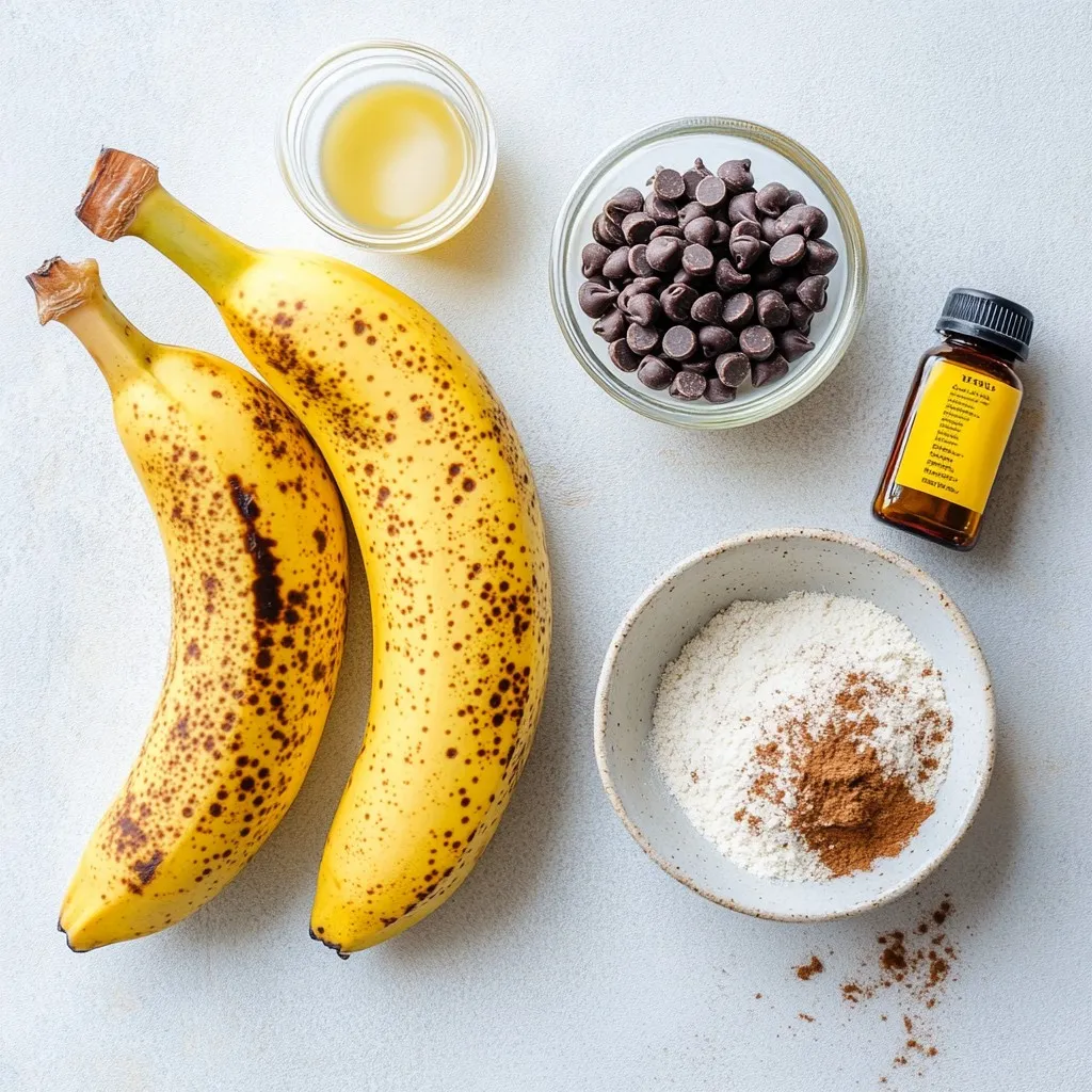 These ingredients make up the heart of the bread. The ripe bananas add natural sweetness and moisture. Coconut oil gives it a rich flavor. Brown sugar adds depth and a slight caramel note. Baking soda helps it rise, while the salt enhances all the flavors. The flour holds everything together, and the chocolate chips bring joy in every bite.